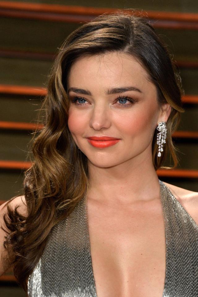 Miranda Kerr gets a few long layers to her long haircut that do not start higher than her collar bone. This way she visually elongates her broad face and softens jaw corners. Her slightly imperfect ends look fresh and nonchalant.
